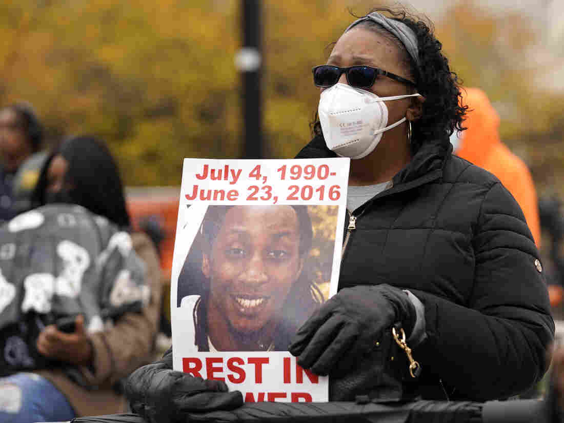 Jay Anderson’s mother, Linda Anderson, holds a sign during a Get Out The Vote rally in Chicago on Oct. 29, 2020. On Wednesday, a Milwaukee County judge said probable cause existed to charge Joseph Mensah with homicide by negligent use of a weapon in Jay Anderson’s death.