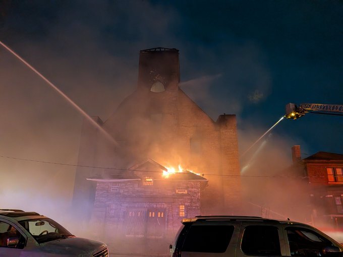 Chicago firefighters were battling a two-alarm fire in the city’s Roseland neighborhood as an abandoned church went up in flames.