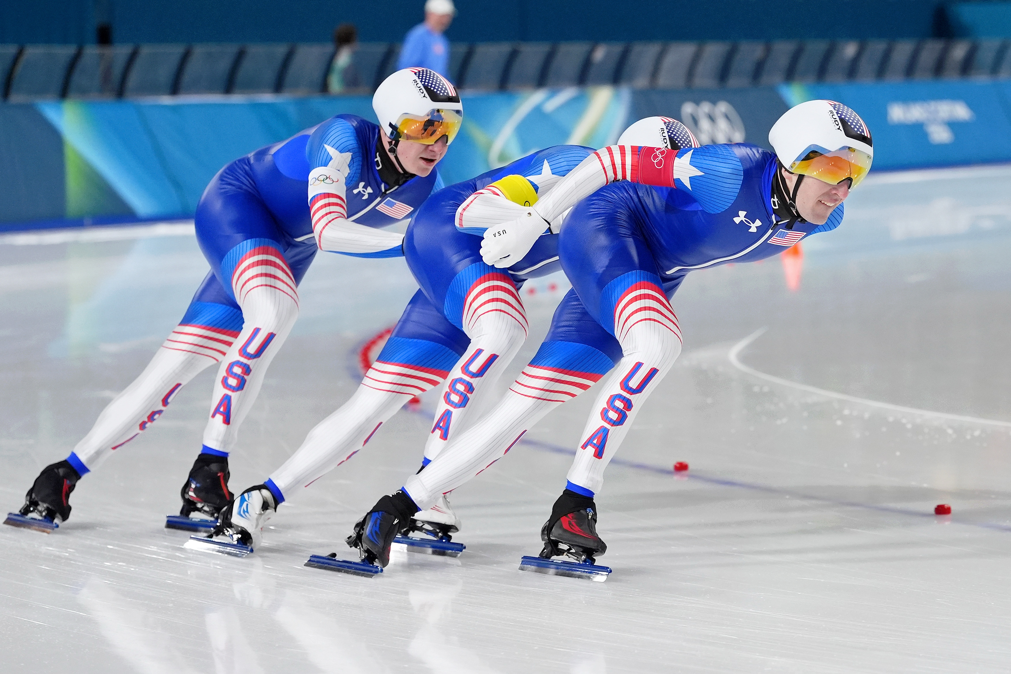 Both the men and women compete for medals Tuesday morning in speed skating team pursuit, which involves a three-person team racing almost two miles in perfect rhythm. The U.S., featuring Glen Ellyn-native Ethan Cepuran and Oak Park-native Emery Lehman, took home a bronze from the 2022 Beijing Games.