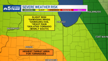 The first round of rain, NBC 5 Storm Team Meteorologist Alicia Roman said, could contain heavy downpours, lightning and gusty winds, with showers lasting through about 2 p.m.
