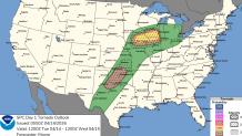 Overnight, another round of showers and storms were expected to develop over the same area, Roman said, though they may lower in intensity. Still, some could contain heavy rain and lightning and lead to flooding, the NWS warned, with hail and “embedded brief tornadoes possible.”